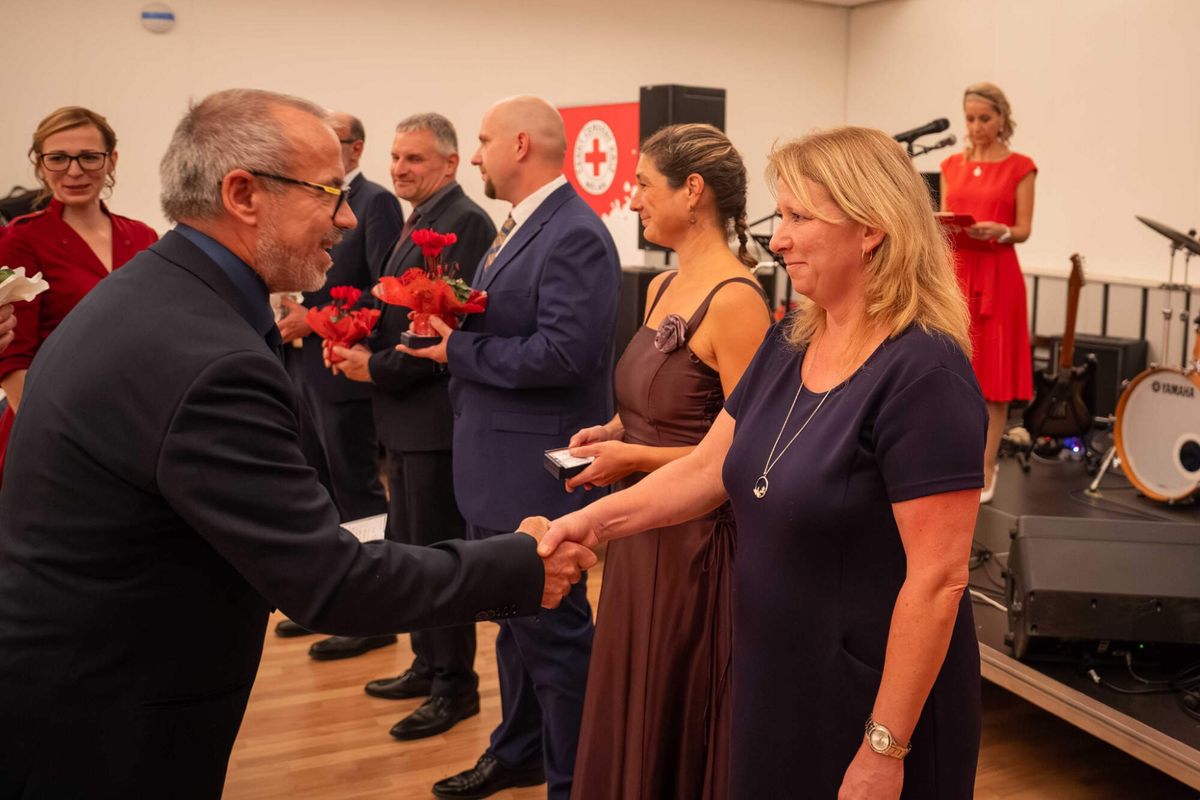 Jménem ÚVN dárcům poděkoval a předal ocenění MUDr. Miloš Bohoněk, Ph.D., primář OHKT a přednosta Ústavu laboratorní medicíny, hematologie a transfuziologie FBMI ČVUT a ÚVN, který je současně členem výkonné rady a místopředsedou OS ČČK Mělník.