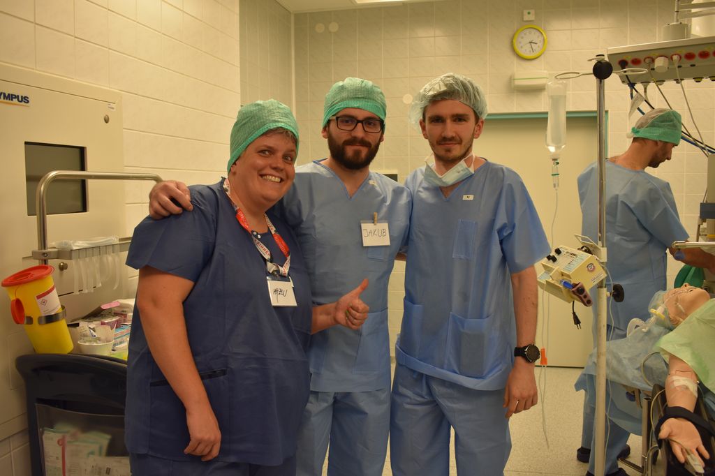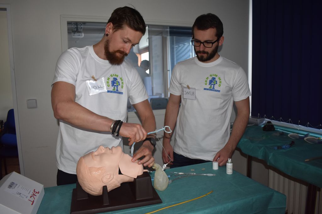 Letošní novinkou byl praktický nácvik celého spektra technik při obtížném zajištění dýchacích cest tzv. „difficult airway“, a to včetně fibroskopické intubace. Následně se simulační centrum proměnilo v urgentní příjem, kde měli posluchači vzápětí možnost své nabyté teoretické a praktické znalosti aplikovat během simulací klinických situací, jejichž součástí byla právě i difficult airway.