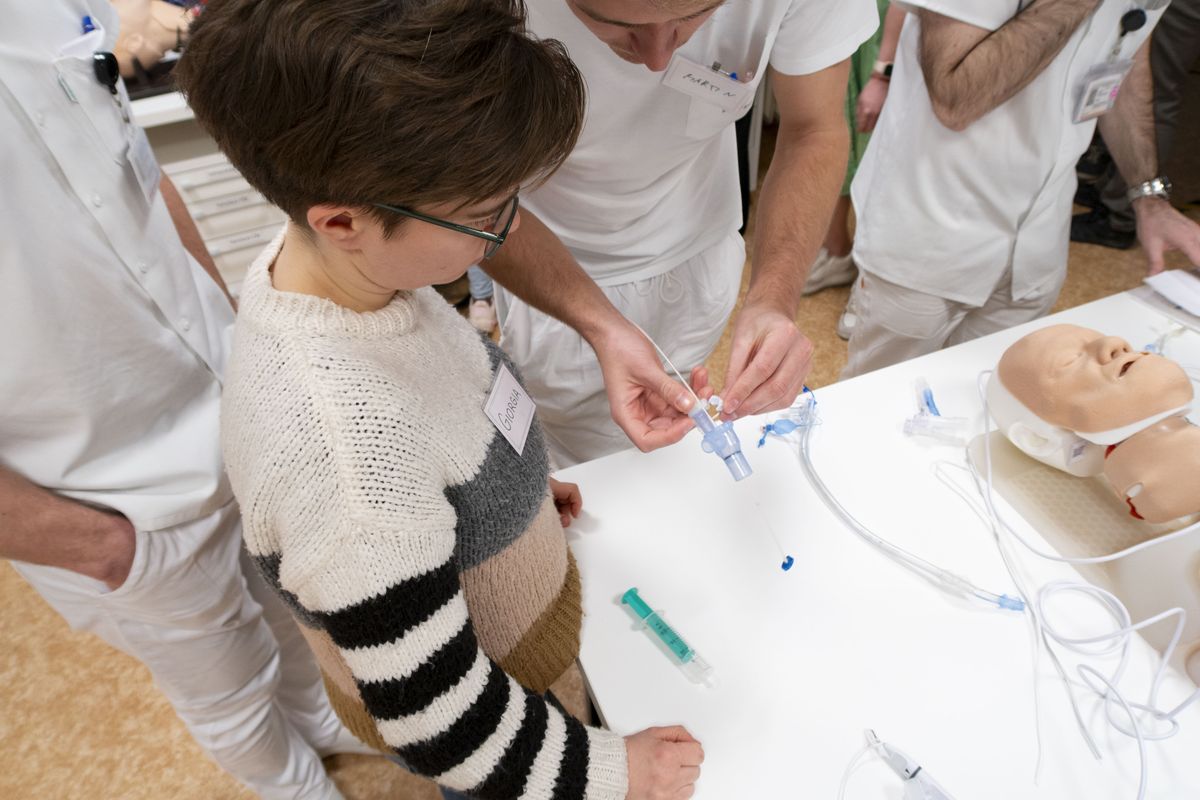 Po teoretické části následoval praktický nácvik na moderních simulátorech, kde si účastníci vyzkoušeli biluminální intubaci, videolaryngoskopicky navigovanou bronchoskopii, extrakci cizích těles a další specializované techniky. Důraz byl kladen na použití nejnovějšího dostupného vybavení, se kterým se lékaři mohou setkat ve své každodenní praxi.