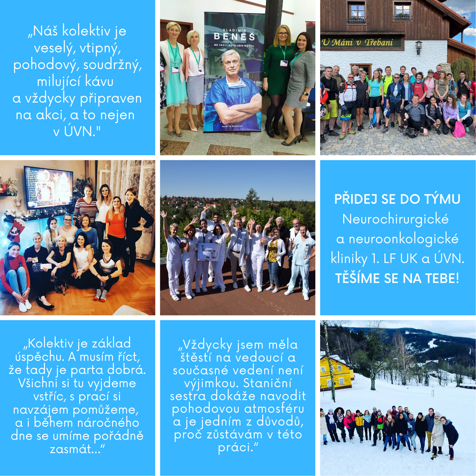 „Pokud máte zájem o chirurgický obor, kde se nebudete bát vzít na sebe odpovědnost za péči o pacienty po operacích mozku a páteře, kde budete pracovat v rychlém tempu oddělení a budete se chtít učit stále něco nového, tak se Vám u nás bude určitě líbit. Těšíme se na Vás!“