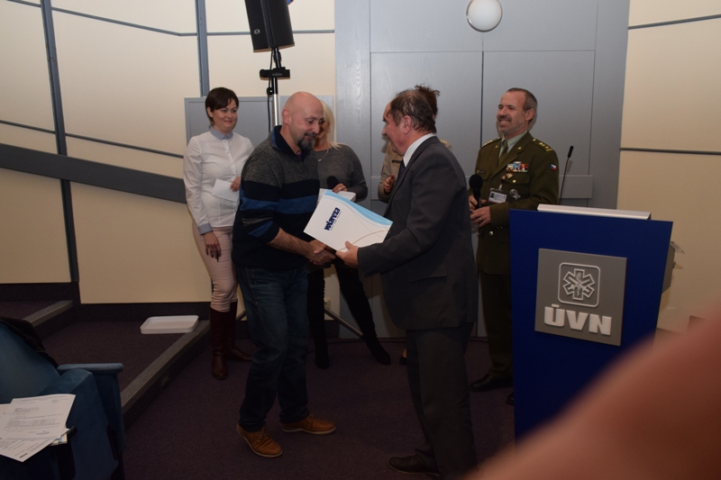 Vedoucí Úseku centrálních laboratoří František Bílek a primář OHKT Miloš Bohoněk osobně poděkovali všem za jejich dobrovolné dárcovství plazmy, krve i jejích dalších složek a především za jejich věrnost ÚVN. Dárcům také poděkoval Václav Kupilík, zástupce VLRZ - dlouholetého sponzora předvánočních dárcovských setkání.