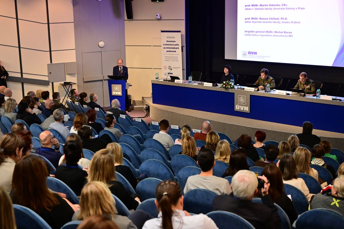 První den kongresu zahájili organizátoři společným úvodním slovem. Dopolední odborný program se nesl v duchu vojenského zdravotnictví – zazněly prezentace věnované organizaci zdravotní podpory na bojišti, leteckým transportům, pohledu veterána na expediční působení AČR i představení ARO VN Brno. V navazujícím bloku se pozornost zaměřila na dětskou intenzivní péči ve VN Olomouc, využití sušené plazmy, aplikaci plné krve v prostředí LZS a péči o zraněné v biologickém ohrožení. Odpolední část nabídla tematický celek expediční zdravotnické péče, představení programu Medevac, zdravotní podporu námořních operací EU, předsunuté chirurgické týmy a osobní zkušenosti zdravotníka z Ukrajiny. Program prvního dne uzavřel blok farmakologických a resuscitačních strategií u traumat – od tekutinové resuscitace u popálených přes emergency blood collection až po diskusi o roli vazopresorů či přednášku o spánkové deprivaci a propofolu.
